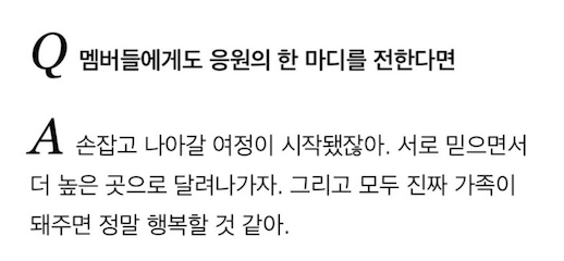 Q12. 멤버들에게도 응원의 한 마디를 전한다면