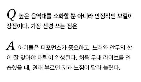 Q7. 높은 음역대를 소화할 뿐 아니라 안정적인 보컬이 장점이다. 가장 신경 쓰는 점은