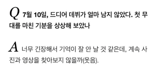 Q1. 7월 10일, 드디어 데뷔가 얼마 남지 않았다. 첫 무대를 마친 기분을 상상해 보았나